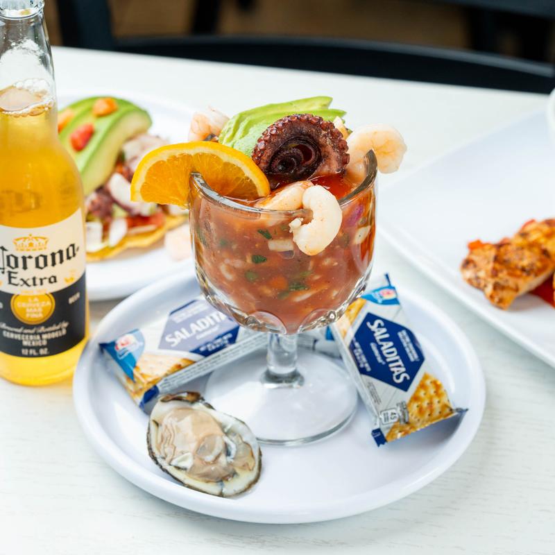 Zunex specialty is prepared with our secret cocktail sauce with shrimp, octopus, fish and pico de gallo. Garnish with lettuce and avocado.