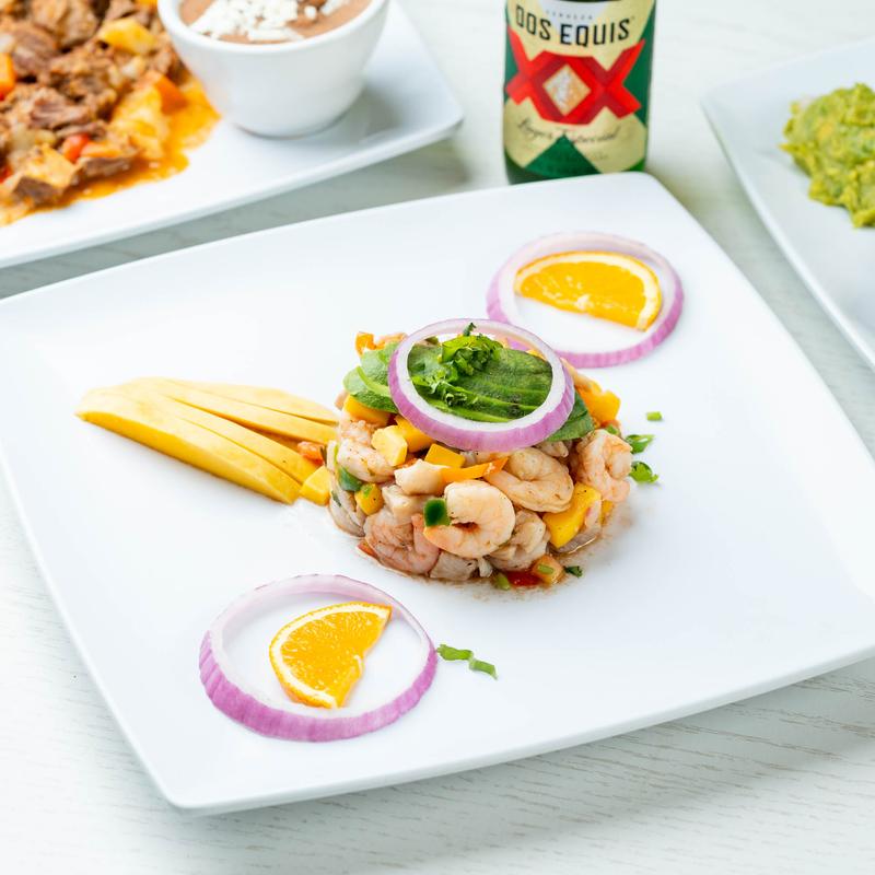 Plump chilled shrimp. Served with our signature red sauce. Garnished with fresh pico de gallo, cilantro and creamy avocado.
